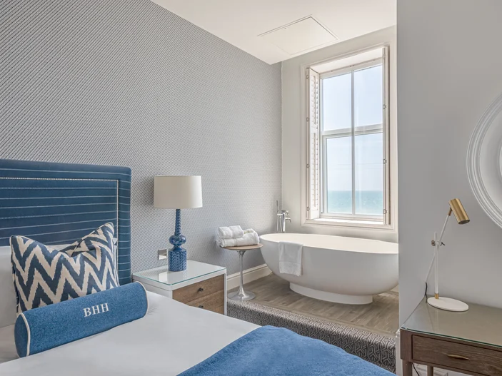 Ocean-infused interiors make these large, front-facing rooms a fantastic respite after discovering the gems of the city. Some include a freestanding bathtub, as well as super-king size beds, deep-cushioned sofas and a luxurious super-soak rain shower.