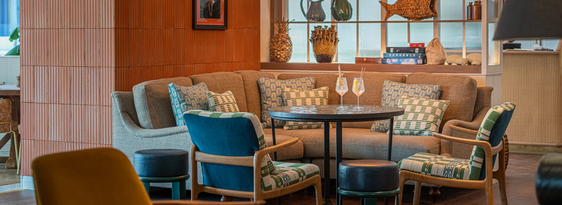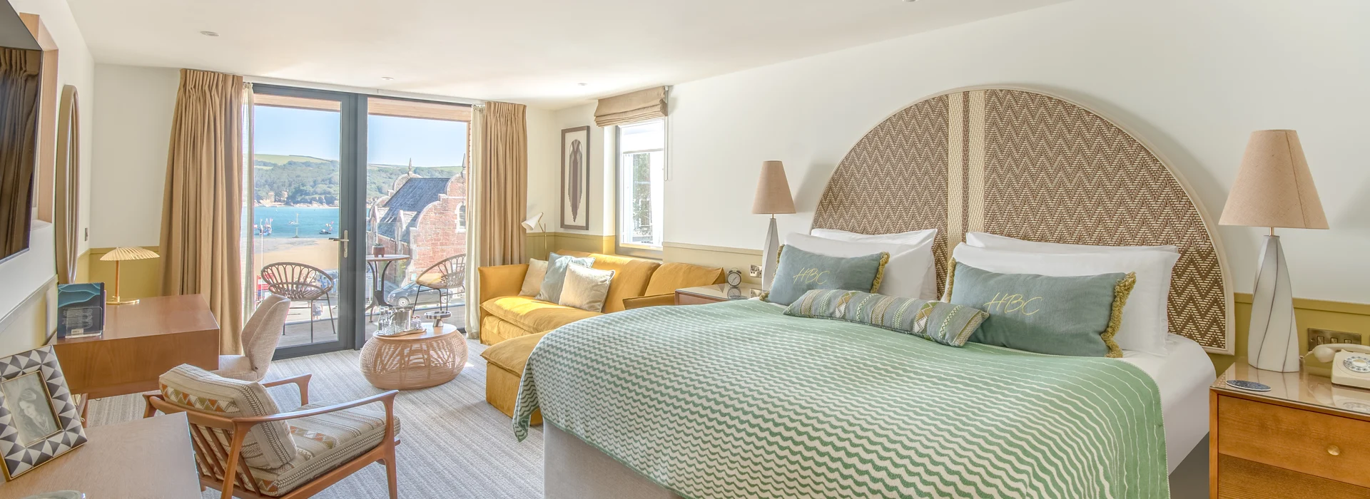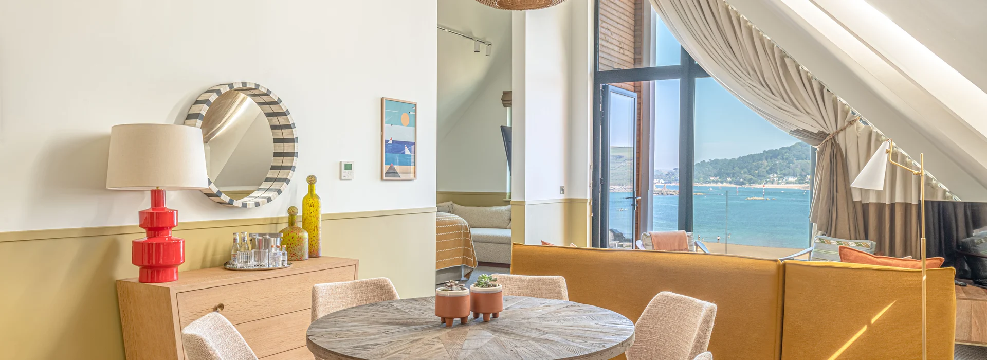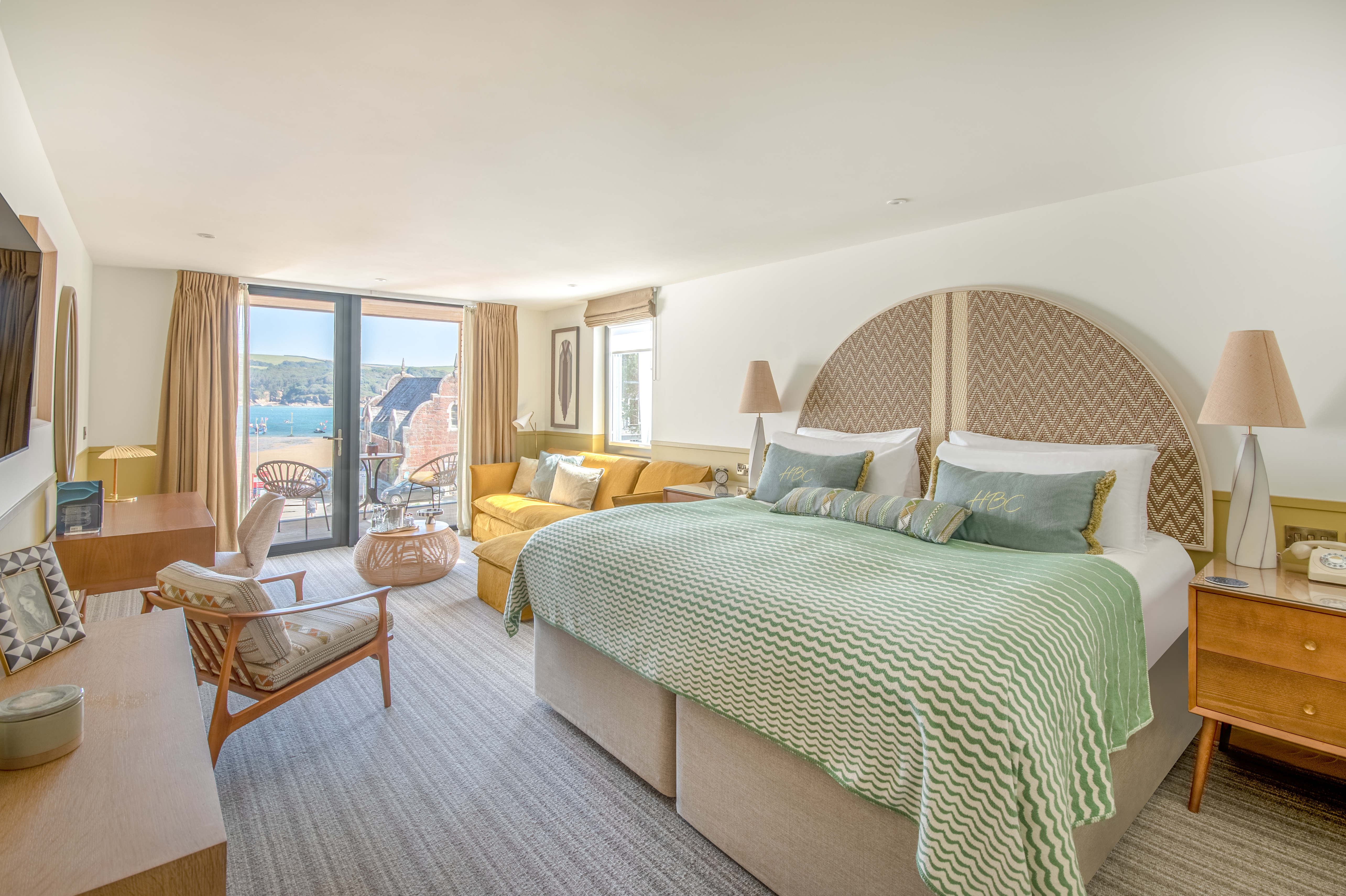 The location was hugely influential. Using colours from the natural surroundings, we wanted different elements of the hotel to reflect its captivating land and sea – Salcombe’s coastal views and rolling countryside are outstanding. We ended up with a colour palette made up of earthy and sienna tones as well as ochre yellows, sea blues and sage greens. The furniture is relaxed and versatile, with tactile materials and soft fabrics ensuring all surfaces feel like an invitation to slow down and recharge. The result is a ‘barefoot luxury’ resort that connects the inside with the outside seamlessly, featuring aspects that work well for both the winter and summer months.