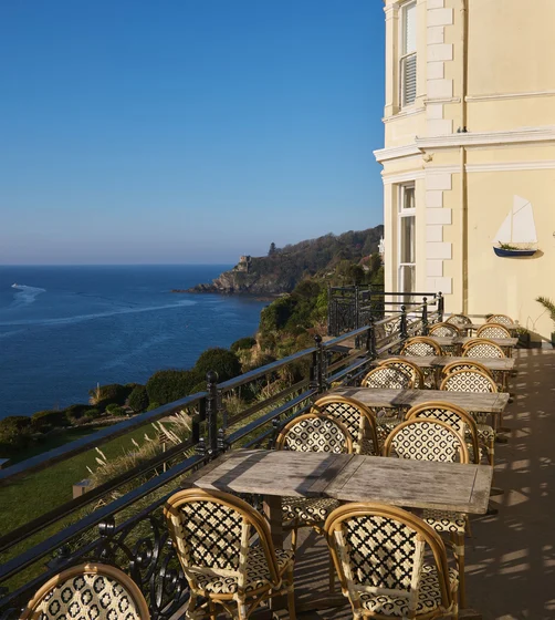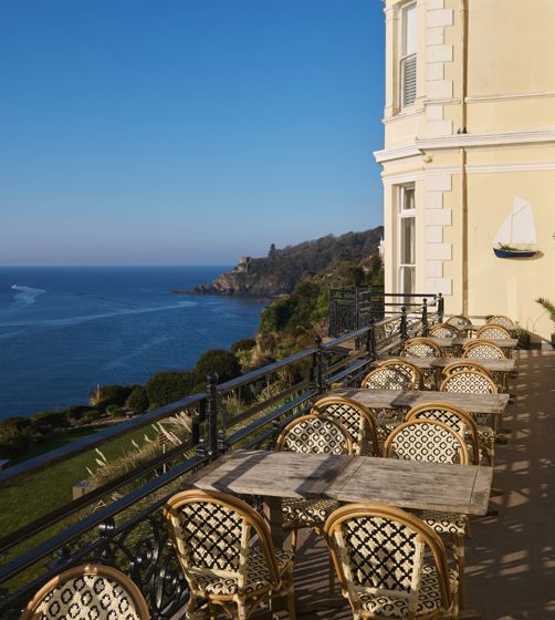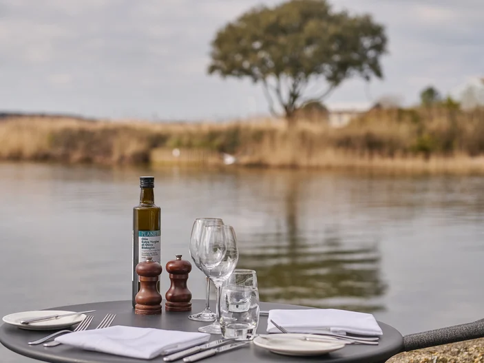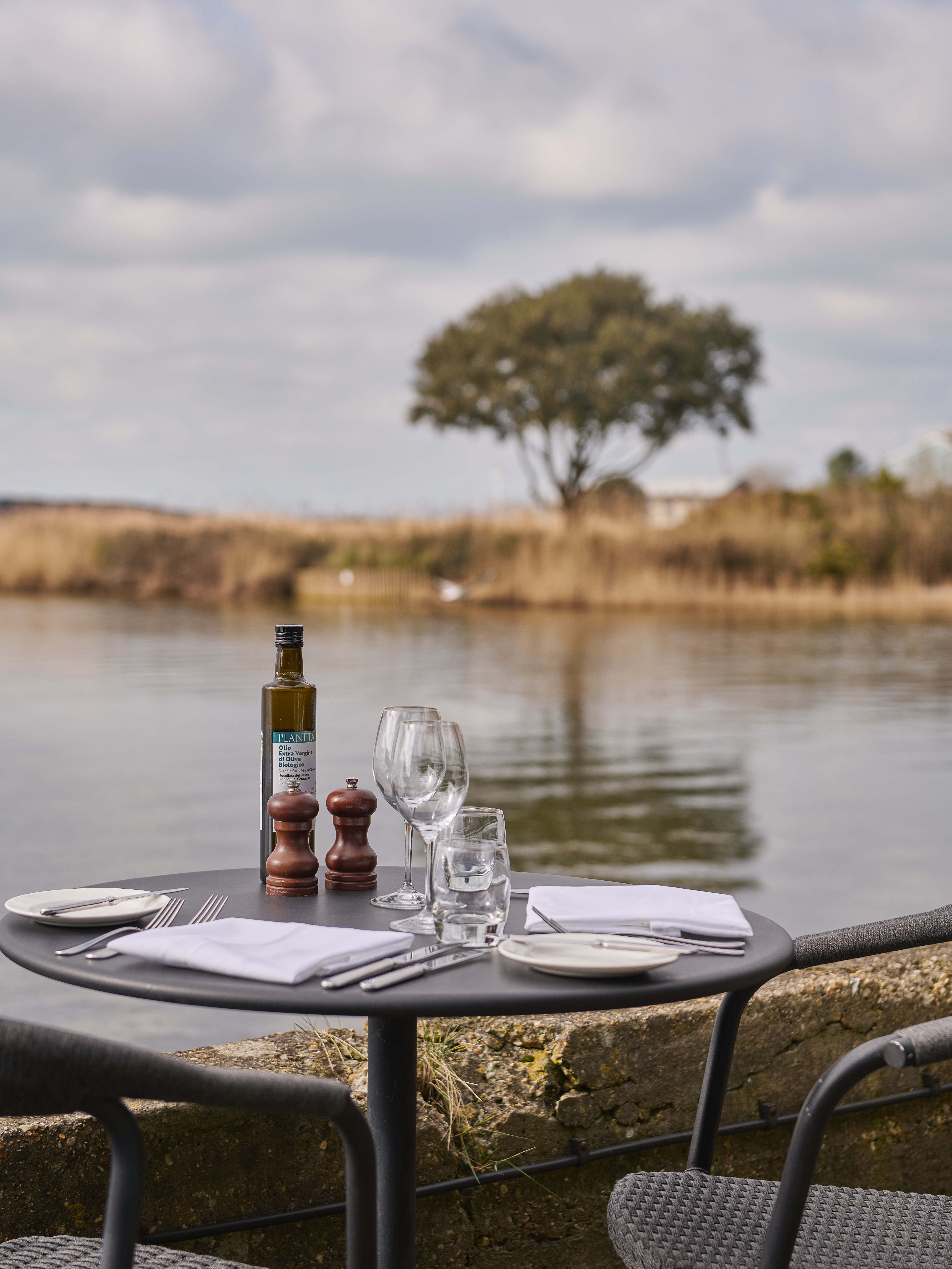 Perched above the estuary, unwind with a drink and breathe in the fresh air in an elegant yet laid-back setting. The view out to sea is breathtaking, with an endless horizon and the sun sparkling on the waves for a sense of calmness.