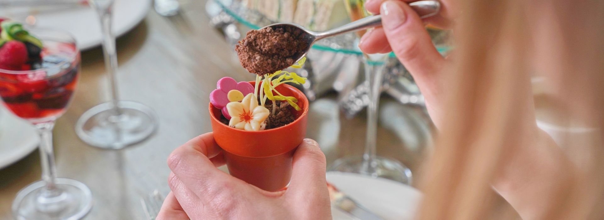 Inspired by the beauty of a traditional English cottage garden that celebrates seasonal colours, this afternoon tea features fluffy scones, enchanting edible chocolate plant pots and intricate petals filled with light meringue, as well as whole tier of sandwiches and savoury treats delivering delicious flavours.