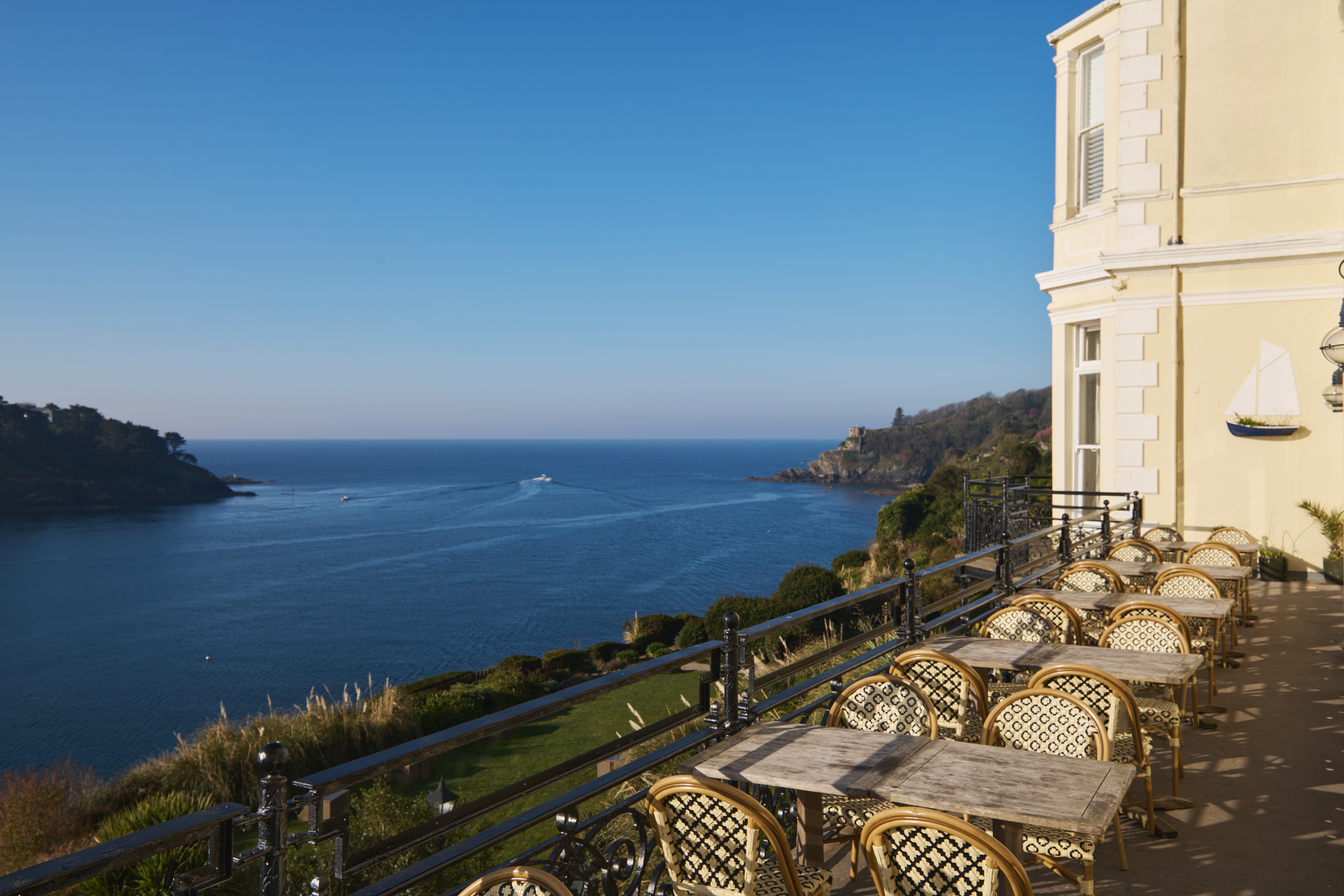 Perched above the town, enjoy drinks and fresh sea air with a sophisticated and relaxed atmosphere. Take to the terrace or the lower gardens for a Cornish afternoon tea, or savour local cocktails and wines, as well as local craft beers and gins.