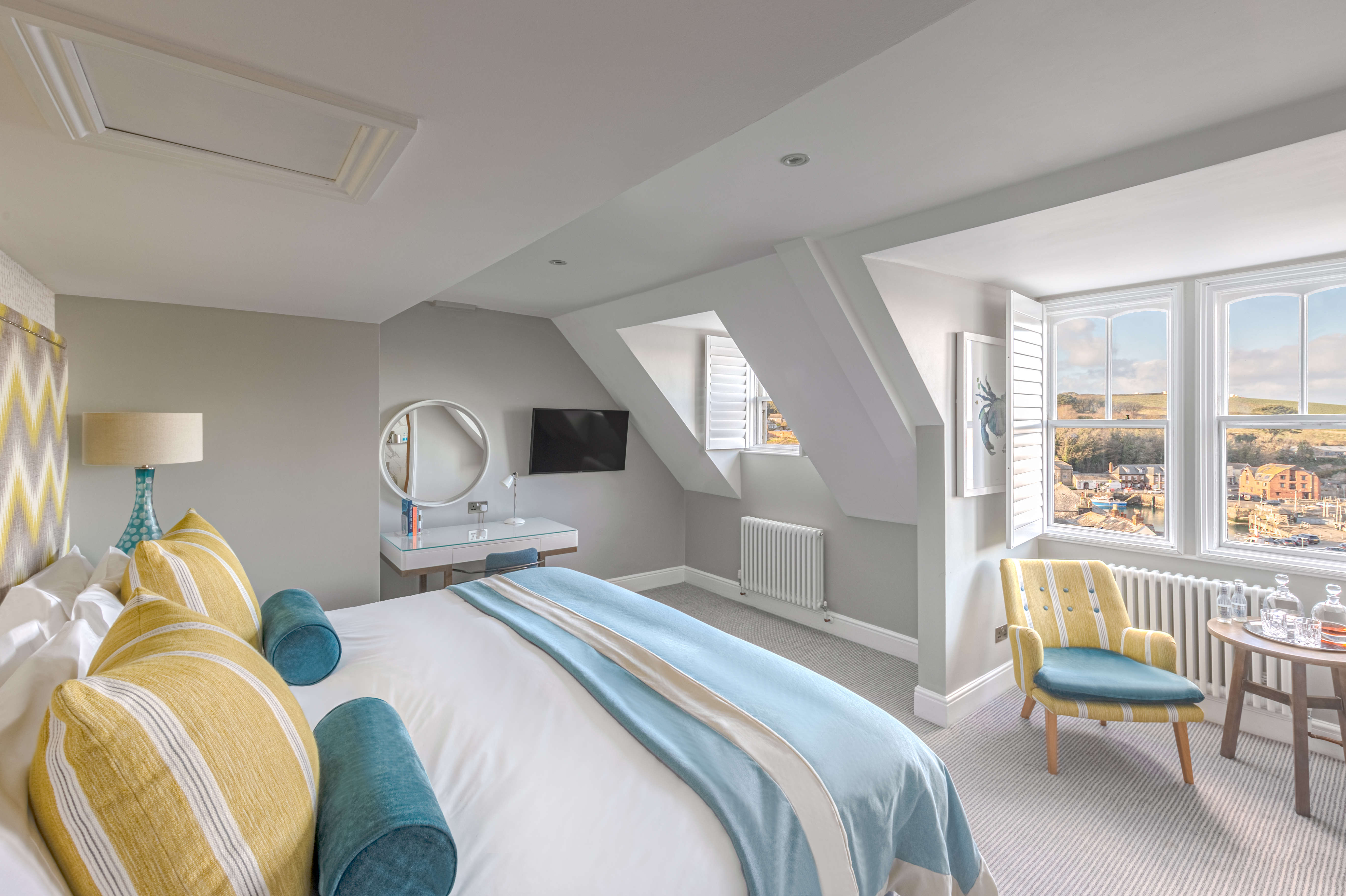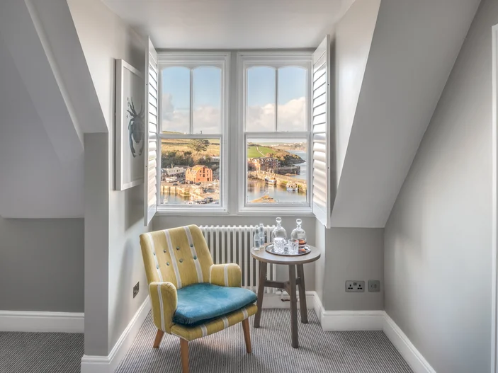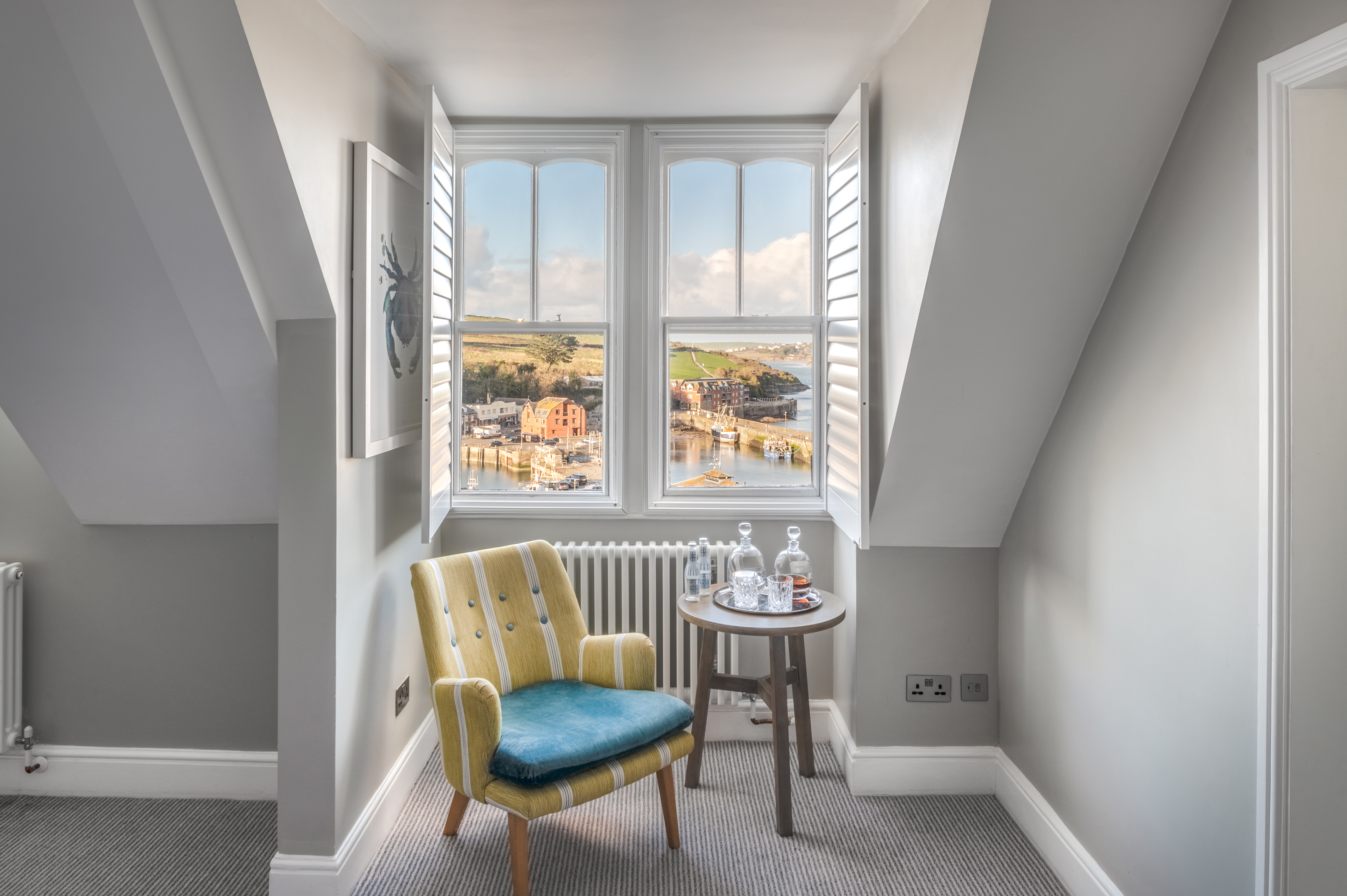 Mid-sized but spacious, our superior estuary room affords you an elevated perspective of the beautiful working harbour below amid our rolling coastal landscape.