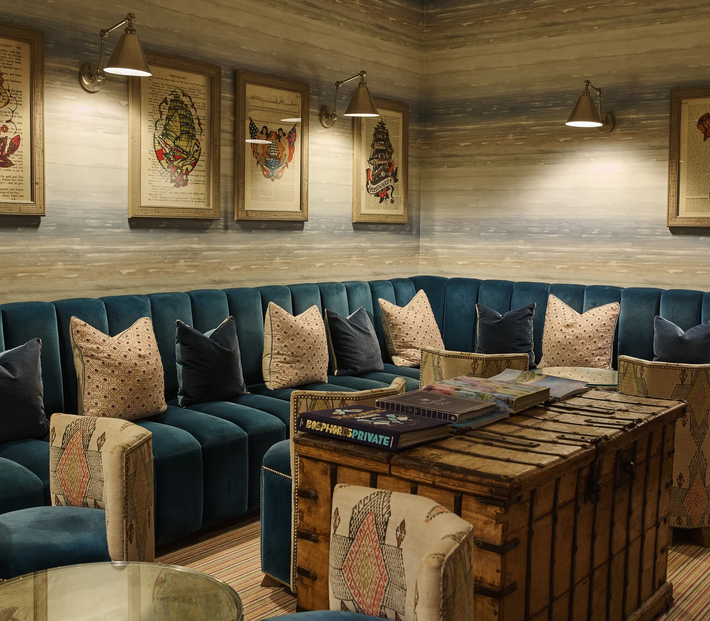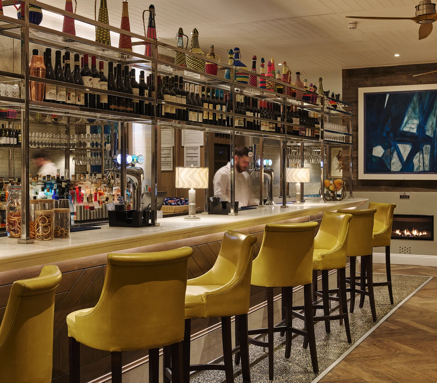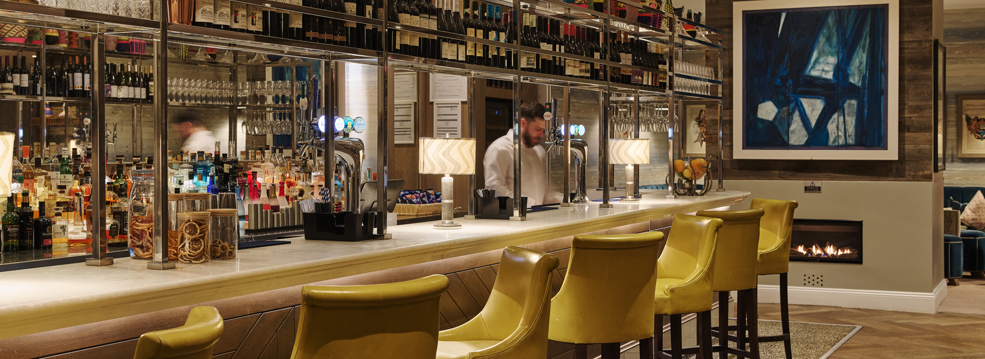 Sink into plush velvet seating for the ultimate cosy after-dinner drinks in The Snug.