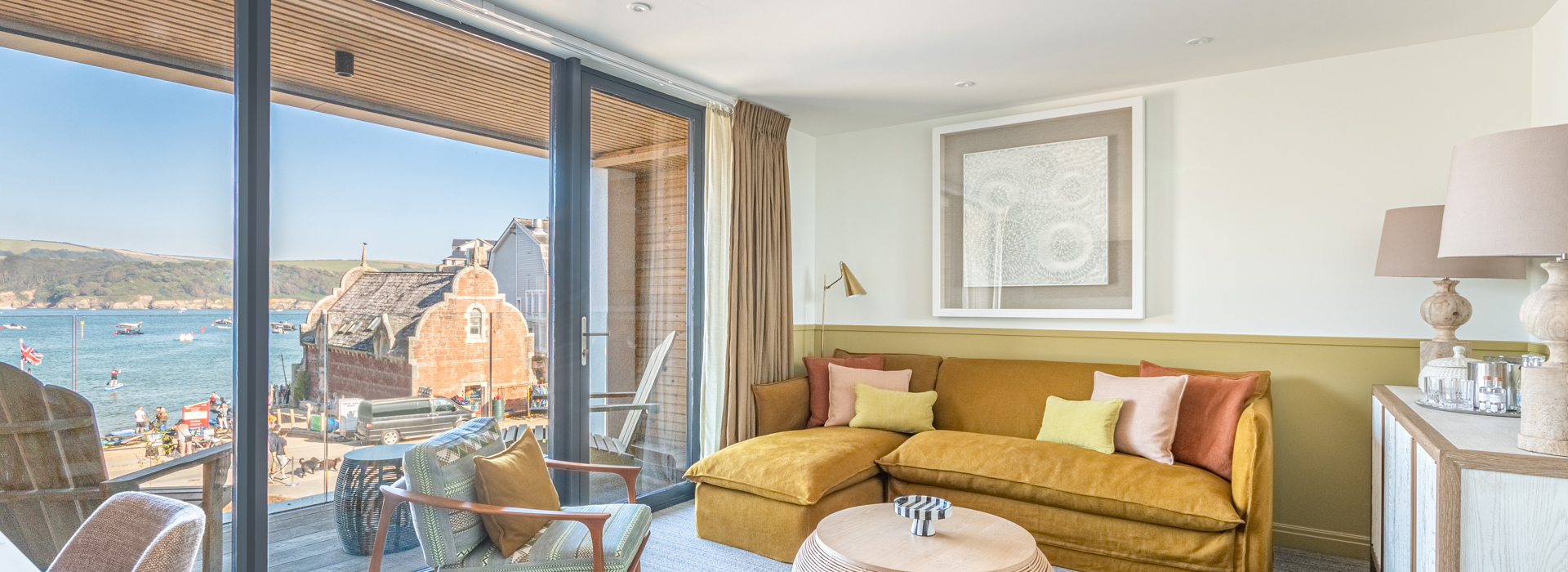 Our open-plan, light-filled suite that seamlessly connects you with the outside, South Sands beach is just moments from your balcony. Enjoy unrivalled sea views whilst sipping on complimentary gin and tonic.
