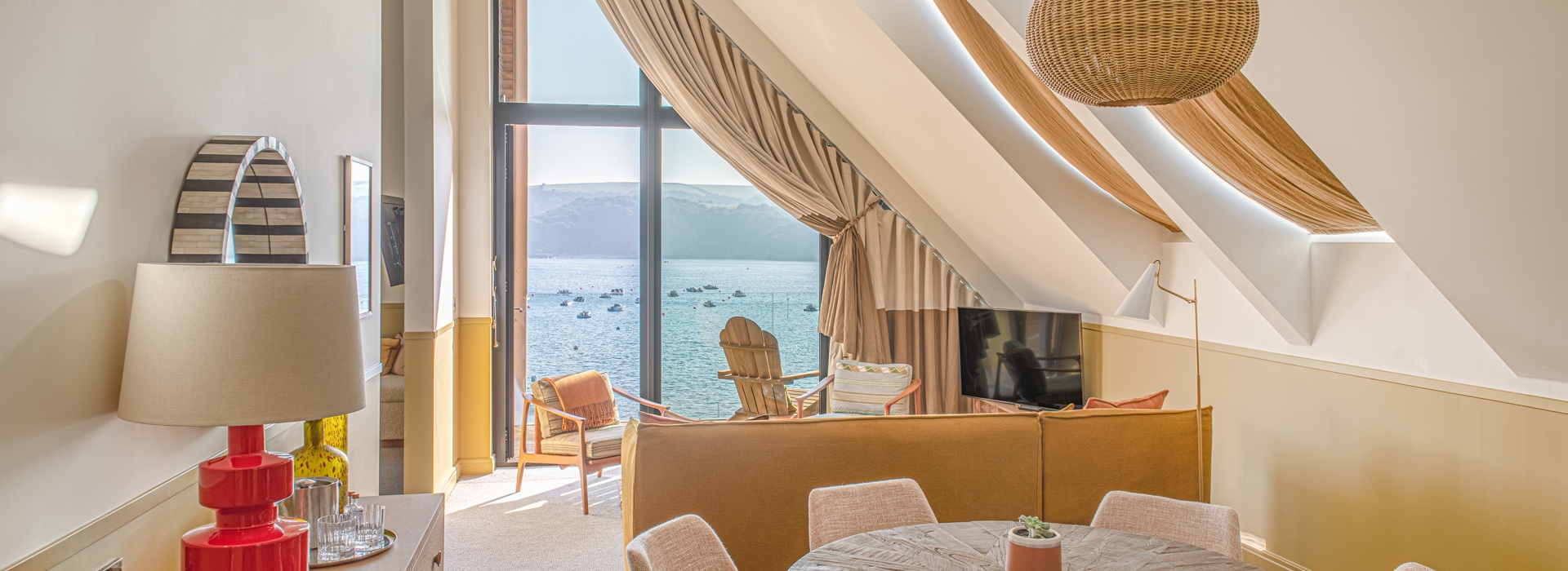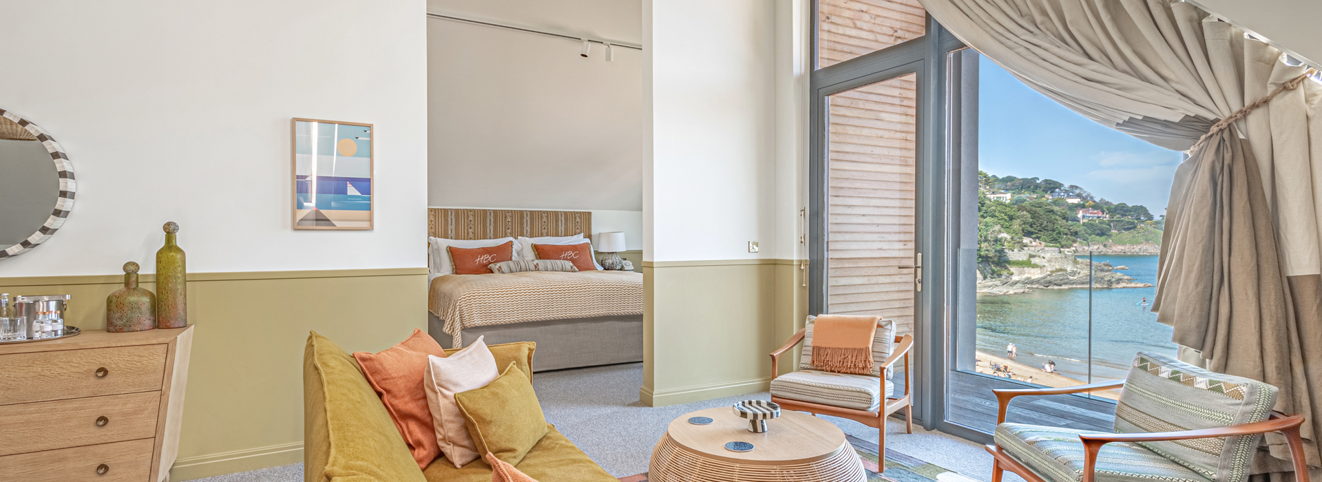 At the helm of your own premium vantage point over the Devon coastline, enjoy a tipple as the sun goes down from your beachfront balcony, a separate open plan lounge and dining area, as well as two Superior Double rooms with their own bathrooms.