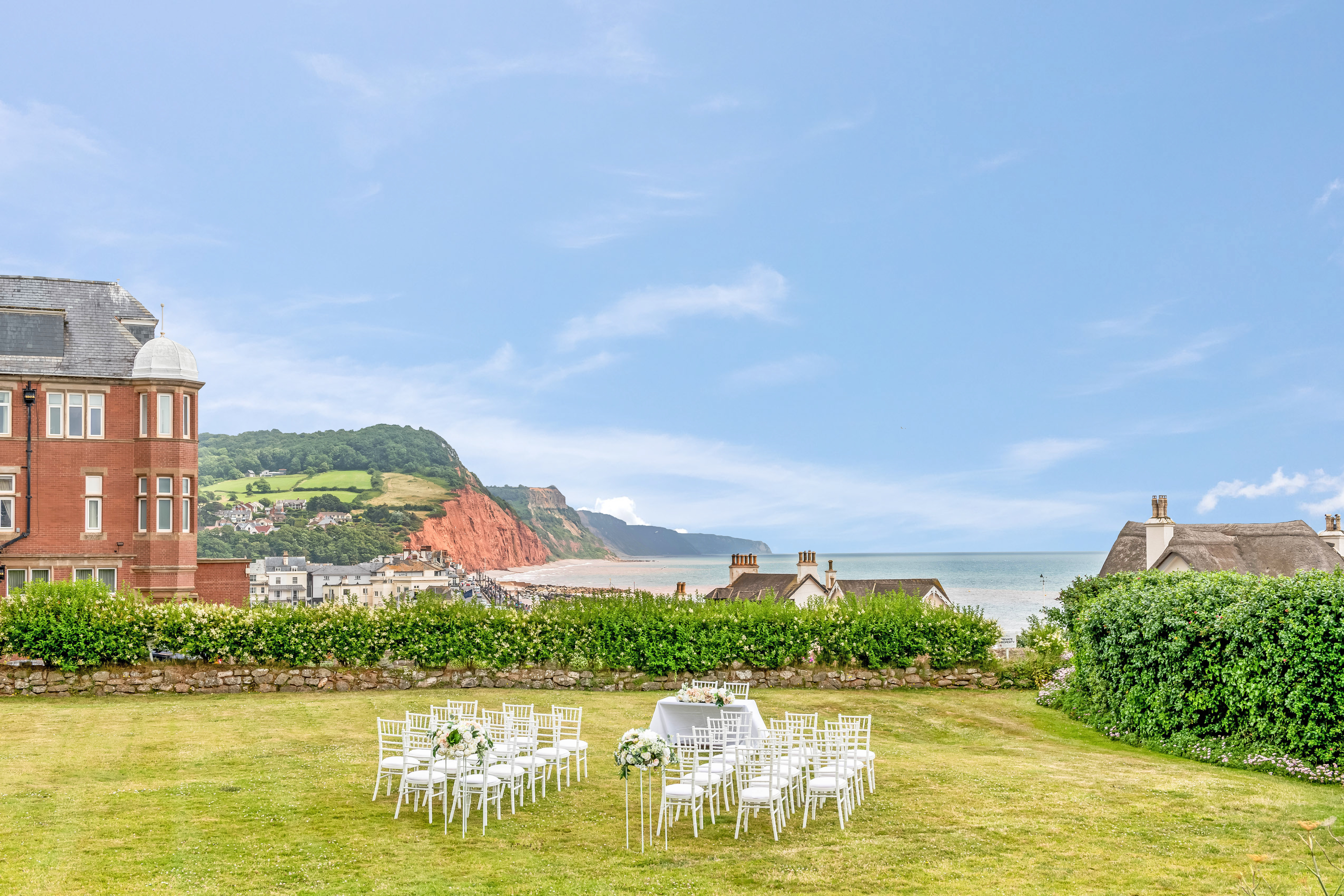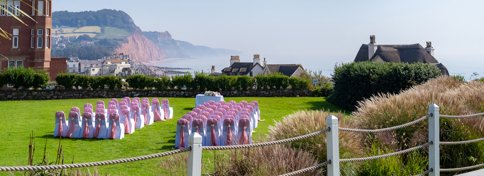 Just steps from the shore, with beautiful views over Sidmouth and the Jurassic Coast, opt for a ceremony or reception within our immaculate gardens or in our elegant Connaught Suite.