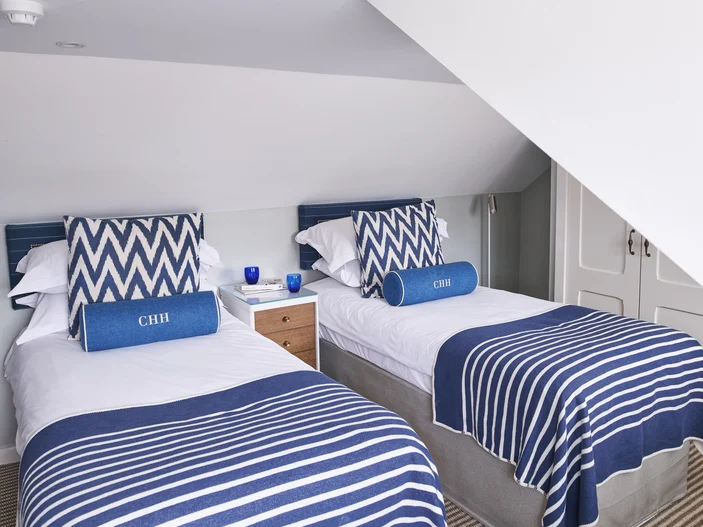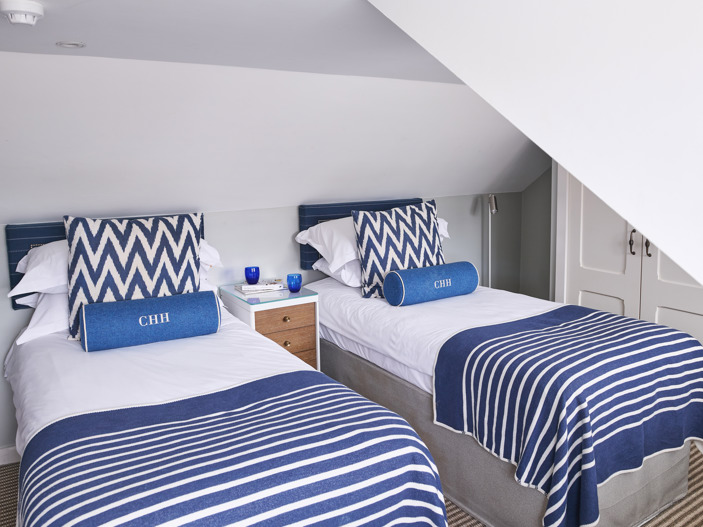 Families find privacy on the top floor of our annexe. A cosy double bedroom joins a twin room, keeping the kids just close enough, with Bramley toiletries in the shower.
