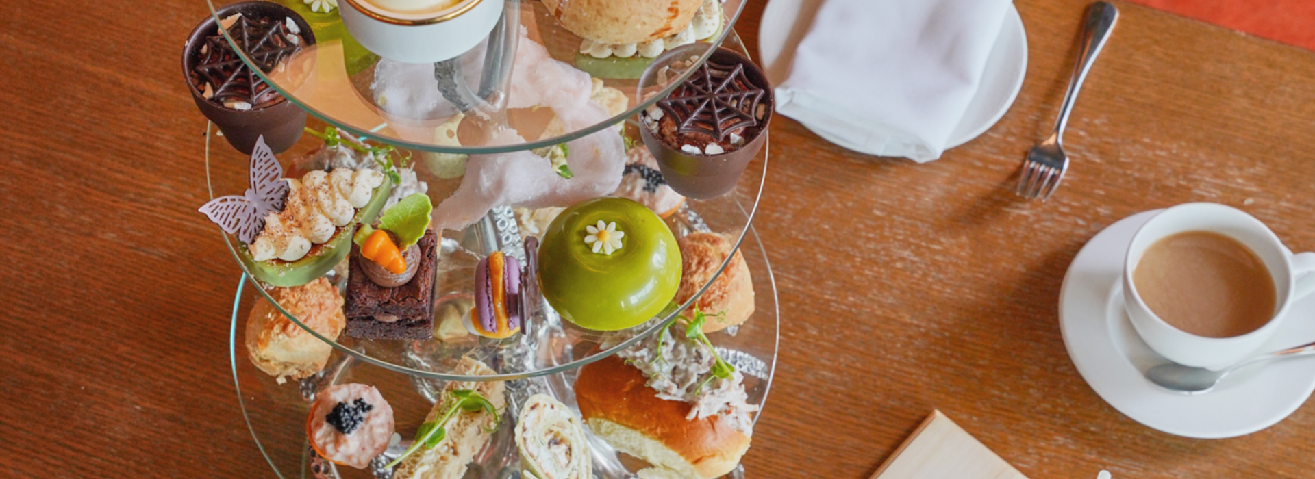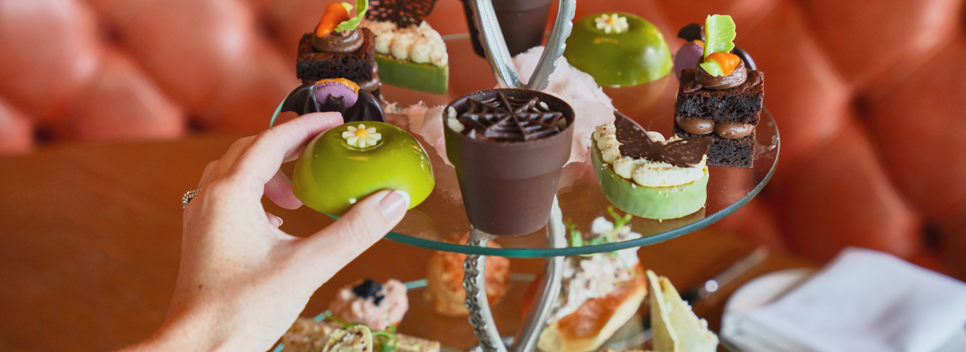 This season, our afternoon tea is serving subtle Halloween vibes - including wicked sweet treats. Think pumpkin pie, bold orange macaroons, and devilishly good savouries.