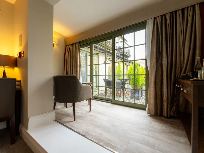 Embrace quintessential Lakeland charm in our Deluxe room, featuring super-king comfort. Decorated by vibrant garden or river views enjoyed from your private terrace or balcony, wash away the day in the bathtub or walk-in shower.