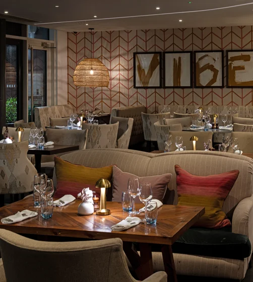 Comforting and always bringing the good vibes, our restaurant features chilled booth seating, deep-cushioned sofas and cosy chairs. Enjoy a fantastic atmosphere as breakfast through to dinner flows from kitchen to table.