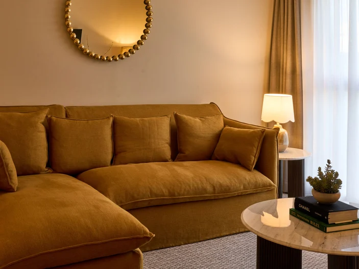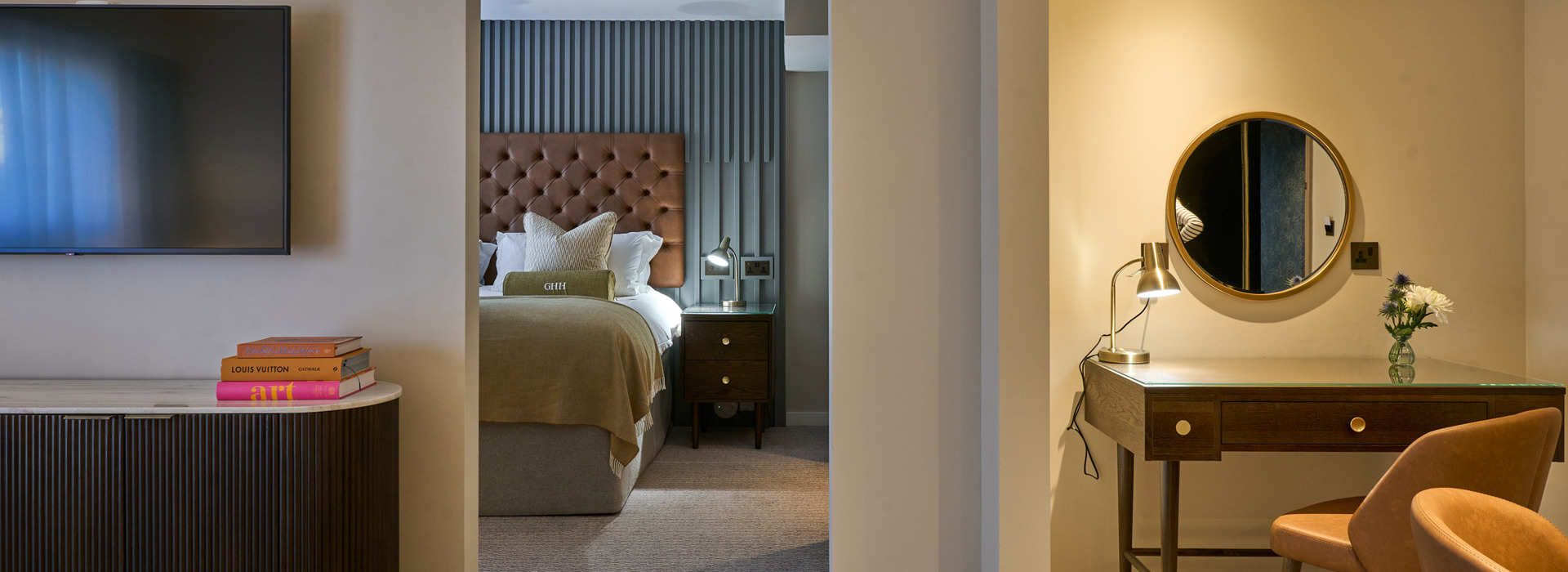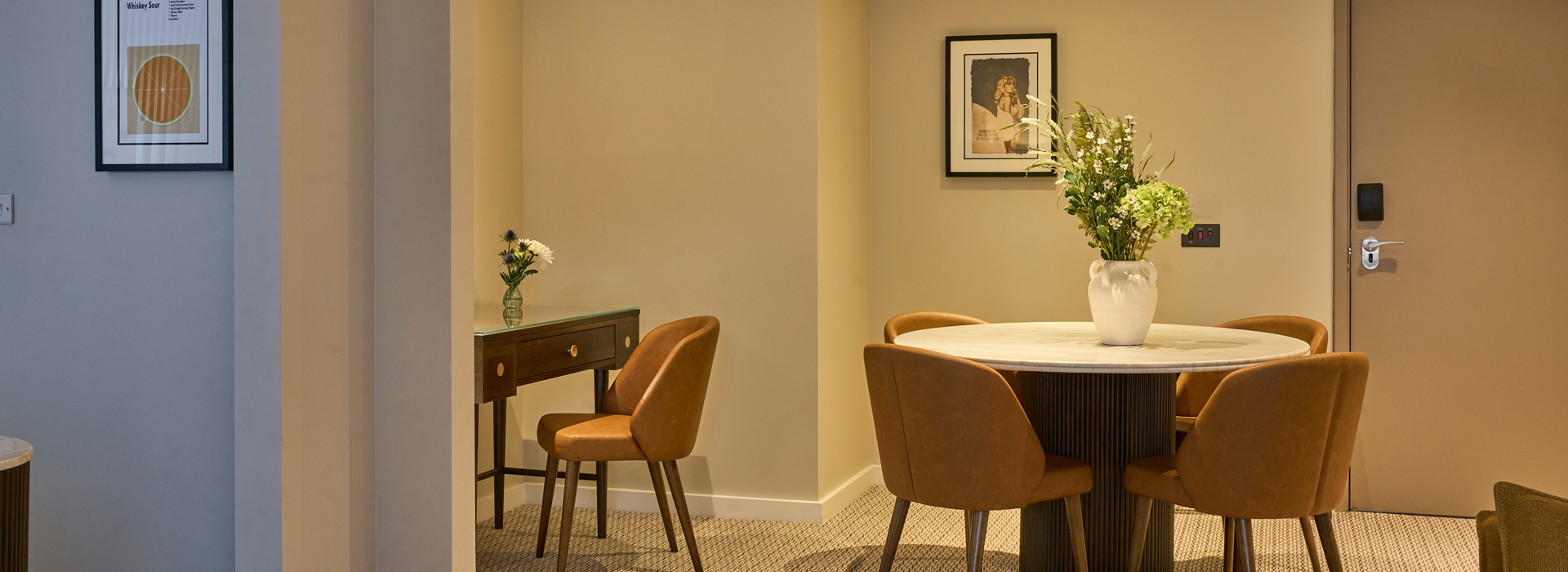 Sink into super-king comfort in our newly refurbished suites, with a large apartment-like living area, separate lounge and large flat-screen TVs for that extra dose of luxury. Each features a super-king signature Harbour bed, L-shape sofa, working desk and black-out Roman blinds. The new interiors layer a warm, earthy colour palette with rich textures for the ultimate cosy feel.