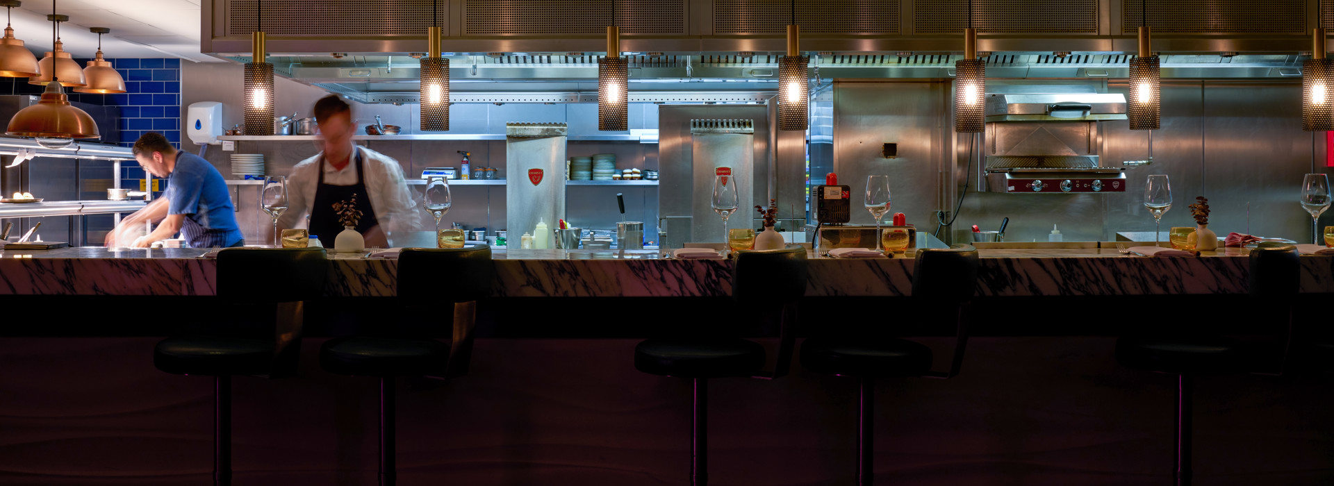 Good times and mood-lit vibes, The Long Bar & Grill is the place for tender cuts of traditionally reared grass-fed beef - ask for the cut of the day and watch chefs fire it up in the open kitchen - or sip on brilliant cocktails at the bar. On the weekend, the bar buzzes as a DJ gets people dancing, from Saturday brunch until late.