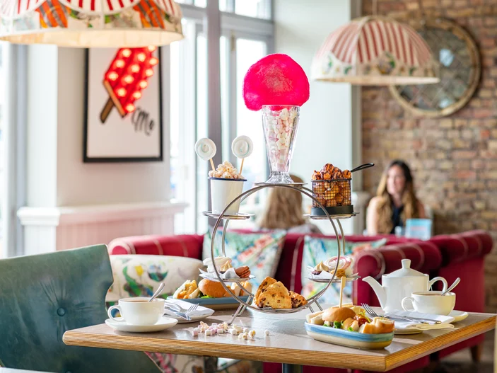 Book our funfair afternoon tea experience and enjoy unusual savoury and sweet treats and warm cookie dough scones with strawberry jam, clotted cream and peanut butter.