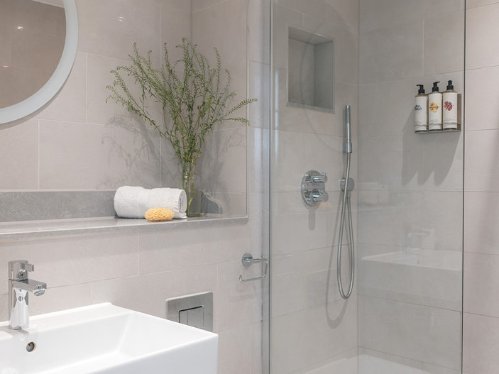 Throw your window open to the sounds of the sea in the distance and feel like you’re aboard a ship with our inland-facing cabin-style rooms. A well-stocked mini bar, Bramley toiletries and waterfall shower make it the perfect retreat.