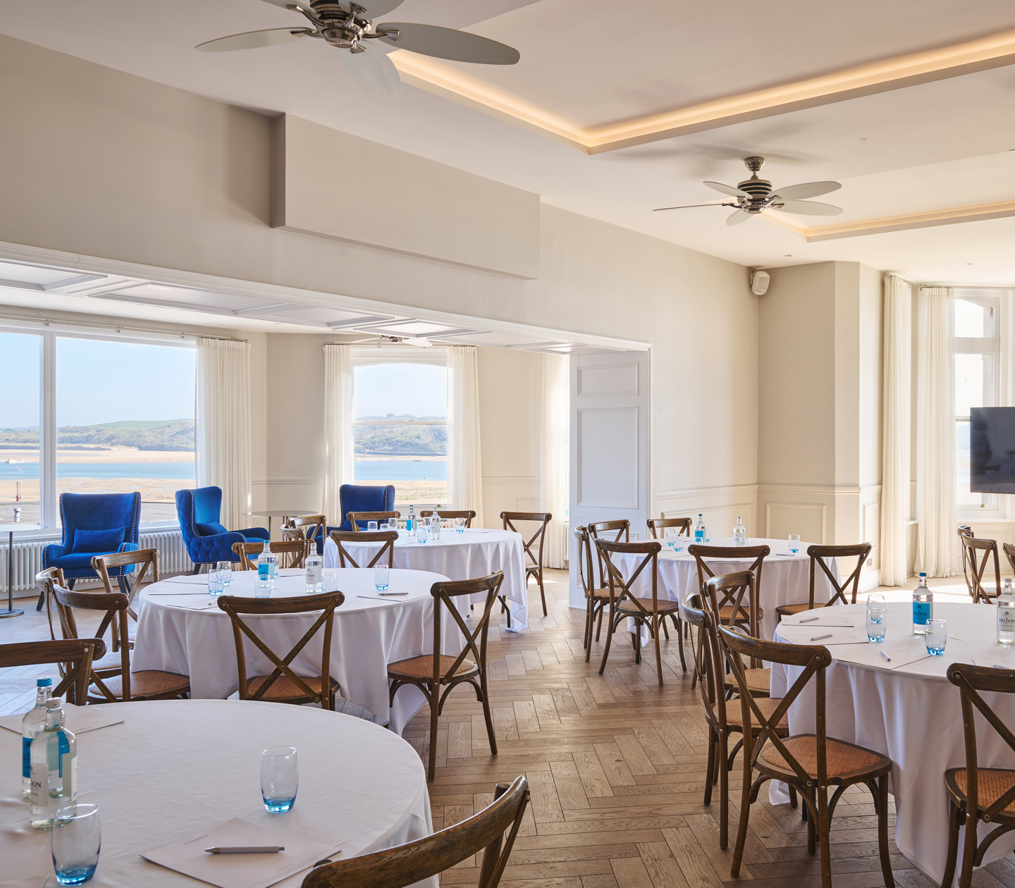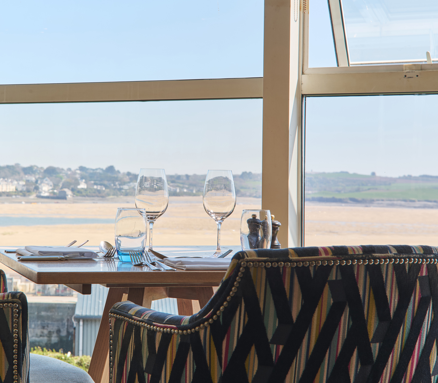 Great for events of up to 80 guests, celebrations and private dinners thrive in our cohort of spaces, awash with vibrant decor and sweeping views of the Camel Estuary.